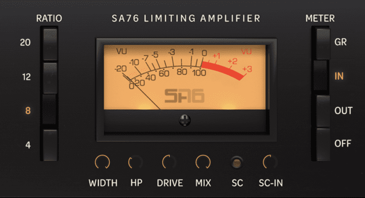 All original 1176 controls are available – Input/Output, Attack and Release, as well as 4, 8, 12, 20 and All ratio options.
