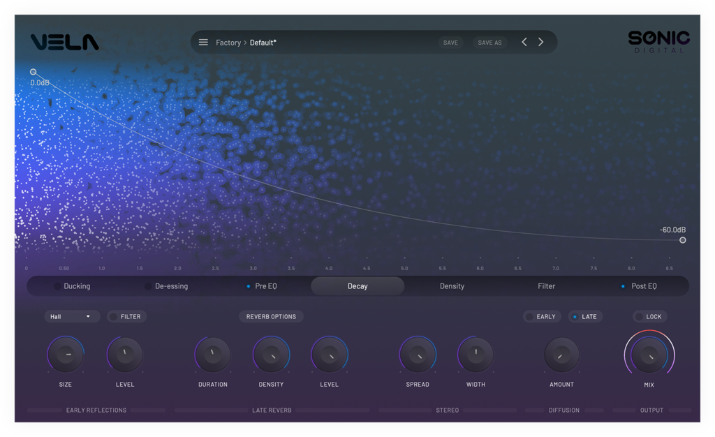 VELA comes with 200 presets, including some that simulate some of the most famous and classic reverbs.