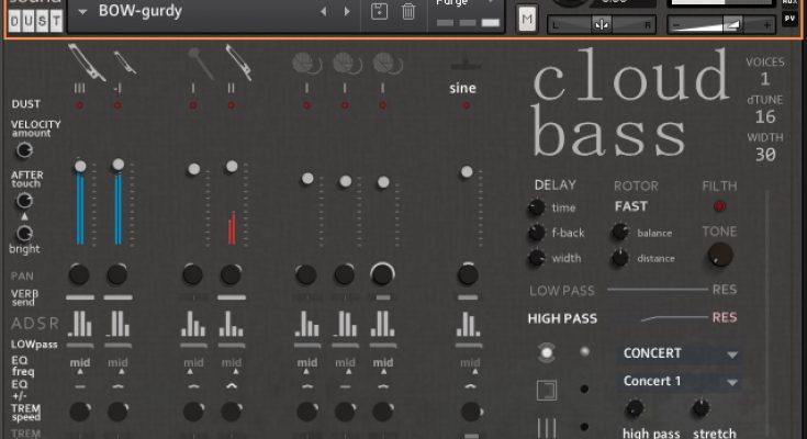 Recorded using various microphone methods and mixed with more traditional dual articulations bass and a set of analogue sub-bass signals with several samples, CLOUD BASS is very different from ordinary orchestral or jazz libraries with double bass.