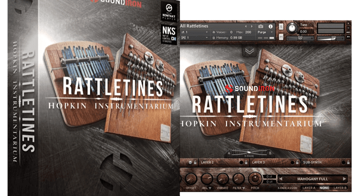Soundiron Hopkin Instrumentarium Rattletines is a collection of unique hand-tuned percussion instruments created by instrument designer and sound sculptor Bart Hopkin. These one-of-a-kind instruments create their own distinctive rattle or buzz aroma, with each note having its own warm resonant aroma. Rattletine includes two rows of tines. The upper teeth hit the “anvil” when they vibrate. The bottom row is clean for clearer sound quality. The mahogany and hacksaw blades have tongues with holes and small pieces of metal.