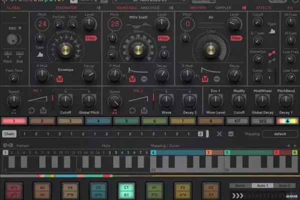 8 separate sound engines contain all the benefits of DSP and shared presets so you can share sounds between engines. The 3 synthesis layers cover a wide range of timbres, from the classic analog resonator to the Wavetable, as well as the amazing Resynth that brings you smooth cymbals, snare drums and synths. We’ve also added a sampler mode for playing your own sounds.