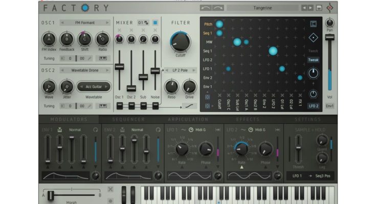 This hybrid polyphonic synthesizer is able to create a wide range of tones using various types of synthesis, including VA, wavetable and FM. The tool offers powerful modulation capabilities: envelopes, LFOs, bipolar sequencers and Sample + Hold. The built-in modulation matrix contains 8 sources and 10 directions.