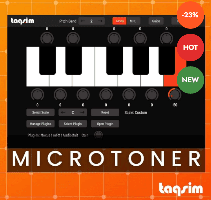MicroToner allows you to easily play microtones with your plugins and virtual instruments. Modeled after oriental scalers, MicroToner modifies incoming MIDI Pitch Bend information to allow most virtual instruments and plug-ins to easily play microtones.