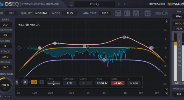 DSEQ is a dynamic processor operating in the frequency domain. It can be used in all situations of mixing and mastering: