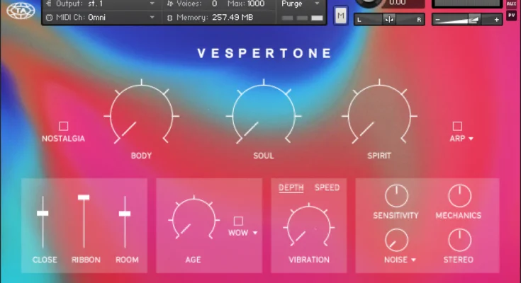 Wurlitzer, Vibraphone, Celeste and Rhodes. Vespertone allows you to take the raw acoustic sounds of Wurlitzer, Vibraphone, Celeste and Rhodes and turn them into abstract versions of themselves.