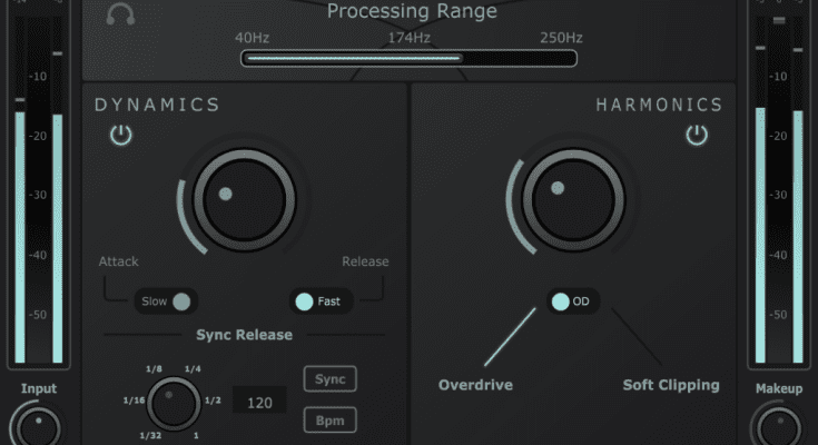 Use the built-in filter to select the specific frequency range you want to process (40Hz to 250Hz). Keep your mix clear and crisp by fine-tuning the bass frequencies.