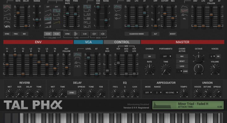 TAL-Pha is an instrumental plugin that imitates the sound of the 80s analog synthesizer Alpha Juno II (MKS-50 – rackmount version). The plugin reproduces classic analog sound combined with modern flexibility and many additional features. The plugin can read and convert system information from the hardware and can also be used as a controller.