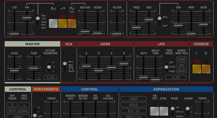 Togu Audio Line – TAL-U-NO-LX – software emulation of a popular hardware synthesizer with a new sound engine and graphical interface. Modern zero-delay filters and carefully calibrated controllers make this synthesizer an excellent replacement for an analog device, and provides all the advantages of software.