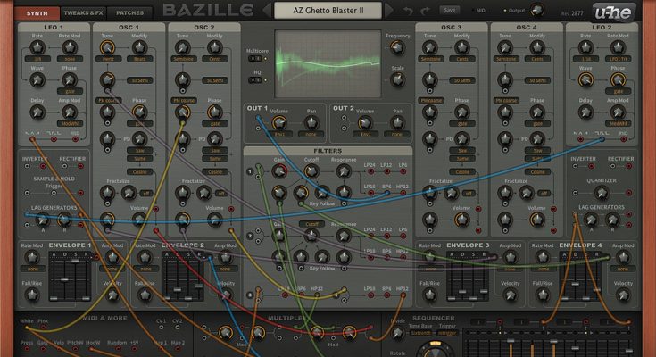 Bazille is a hybrid modular synthesizer that combines digital oscillators with analog filters and realistic effects. The flexibility of connecting modules offers a large sonic range: powerful bass and leads, subtle textures, jumpy beats, modular clutter and more. The instrument offers 4 digital oscillators with FM (frequency modulation), PD (phase distortion) and FR (fractal resonance), as well as 4 multi-mode analog filters, 4 built-in effects (delay, distortion, phaser, spring reverb), 2 LFOs, 4 ADS (S) R envelopes, 2 assignable oscillators, 8 x 16 step morph sequencer, sophisticated signal mixing modules, RM (ring modulation), AM (amplitude modulation).