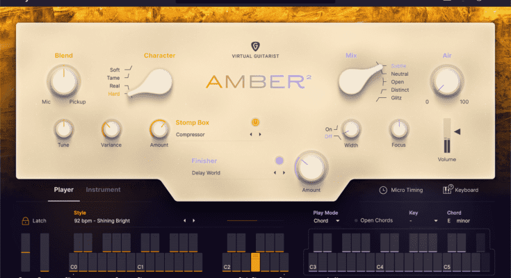 Don’t waste time transferring your DAW prowess with acoustic accompaniment from your very own session pro, Virtual Guitarist AMBER 2. Whether it’s an intimate indie song, an epic pop ballad or an iconic rock anthem, the countless chords, octaves and riffs of this fine steel string will make you sing instantly.