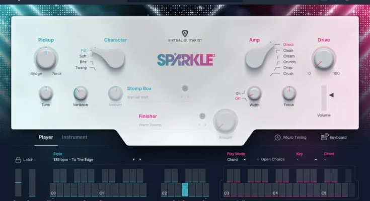 From funky clean to indie rock. SPARKLE 2 Virtual Guitarist is your specialist for single-note electric guitar chords, octaves and riffs. A true team player who doesn’t draw everyone’s attention to himself, supporting your songs with just the right amount of swagger and style.