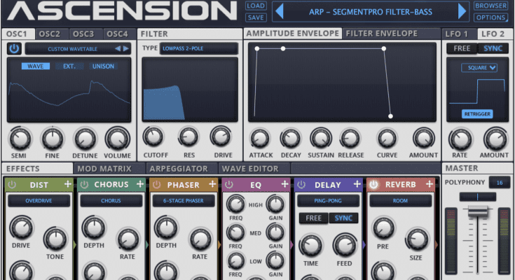 At Ascension, we have included over 20 years of production experience to create an instrument for anyone who makes music in the EDM genre. The tool is based on table-wave, ROM synthesis, as well as with the capabilities of FM.