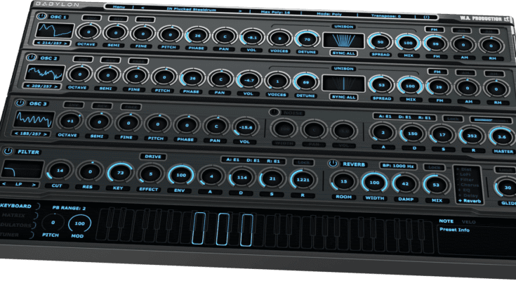 WA Production has released Babylon, the new Synthesizer plug-in for PC and Mac with a single interface page. It includes three polyphonic oscillators with 257 HQ signals with advanced sound shaping capabilities such as FM, RM and AM modulation. In addition, it includes various types of filters. Sounds can be completed with various effects, including distortion, reduction in bit rate and sample rate, filtering, chorus, equalizer, delay and reverb.