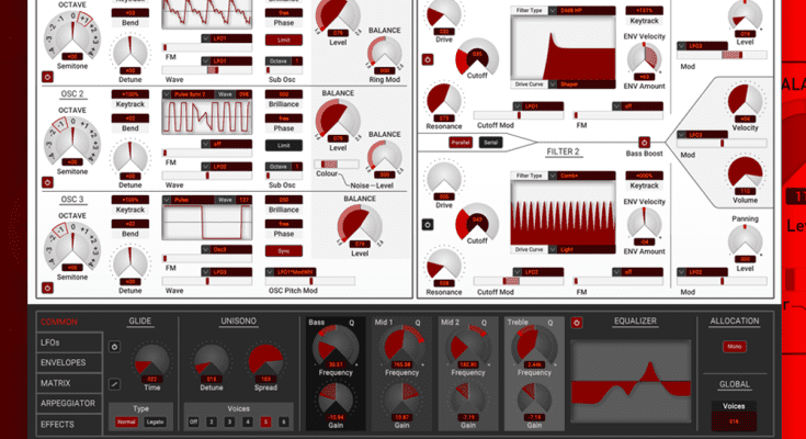 3 fat oscillators per voice (two of them with sub-oscillators) with classic waveforms and 68 Wavetables taken from the legendary Microwave and Wave synthesizer, as well as Q and Blofeld – 2 independent multi-mode filters – up to 4 layers per sound and 4 stereo outputs.