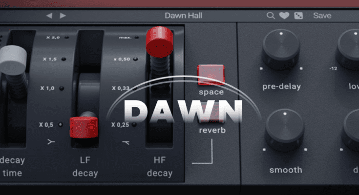 Dawn gives you access to the original device’s full reverb time range of 0.4 to 4.5 seconds, as well as distinctive low-frequency decay and high-frequency decay (damping) controls. Get creative with the breathtaking Space mode with a near-infinite decay time, great for outlandish pads and synths.