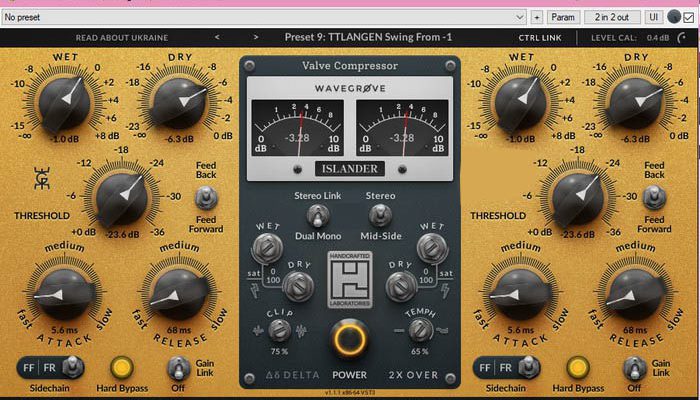 - Sidechain with Feed Back and Feed Forward, both at 75Hz and 150Hz, and of course full range.