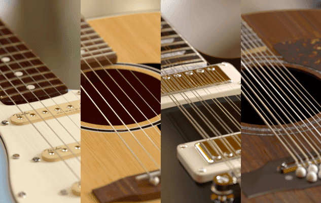 Strum Guitar contains all major and minor chords, striking up and down, from four guitars: electric, acoustic, 12-string electric, and 12-string acoustic.