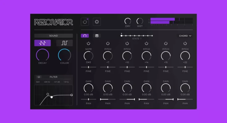 Add harmonic resonance to any sound. Harmonic resonator featuring 6 customizable resonators, easy-to-use controls, effects and a simple interface.
